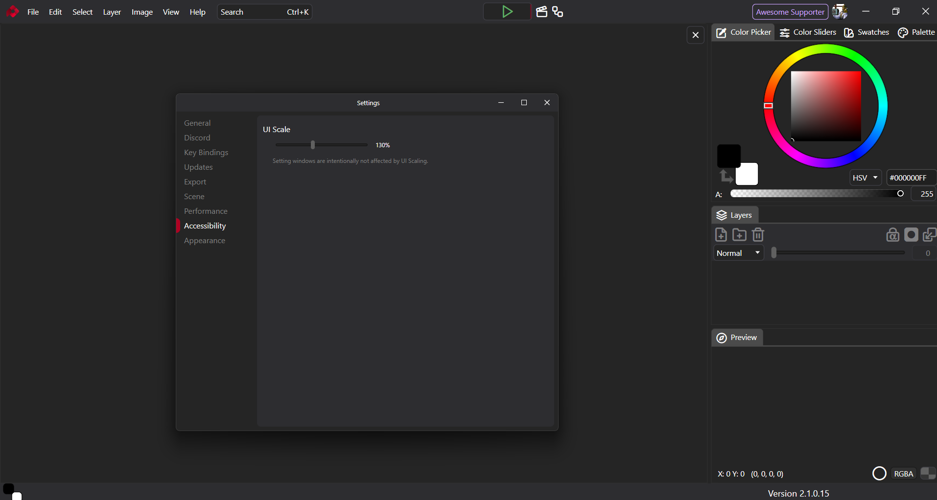 Here’s a screenshot of the scaled UI (the settings window is the only one that doesn’t scale, but that’s intentionally made to avoid certain problems)