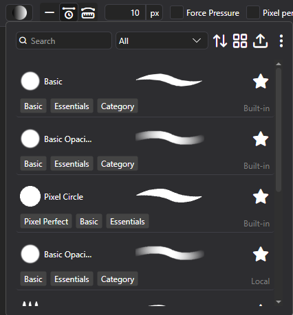 - Tags: Built-in Brush tags, visible in Brush Picker